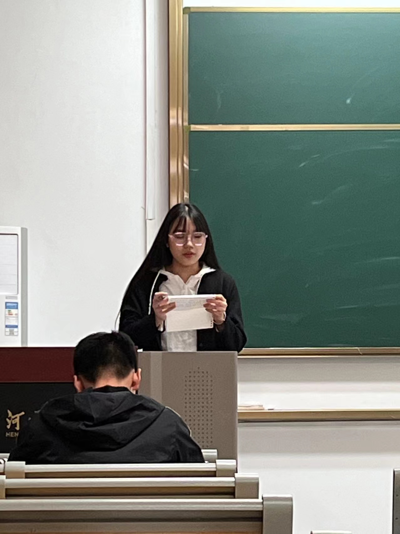 焦玉婧,女,共青团员,金融2205班学生。她在2022-2023学年期间取得绩点4.55的好成绩,并获得了校级“三好学生”的荣誉。她也积极响应学校以及书院的号召,参加各类活动,如“学雷锋,树新风”活动等等。大一的寒假期间,她积极主动报名参加家乡的志愿者活动,坚持每天早上六点到志愿服务地点,不停歇的坚持四五个小时提供志愿服务,最终获得了志愿组织的表彰。课外实践方面,她参加了英语社团,积极参与社团里的各项活动并且为社团作出贡献。