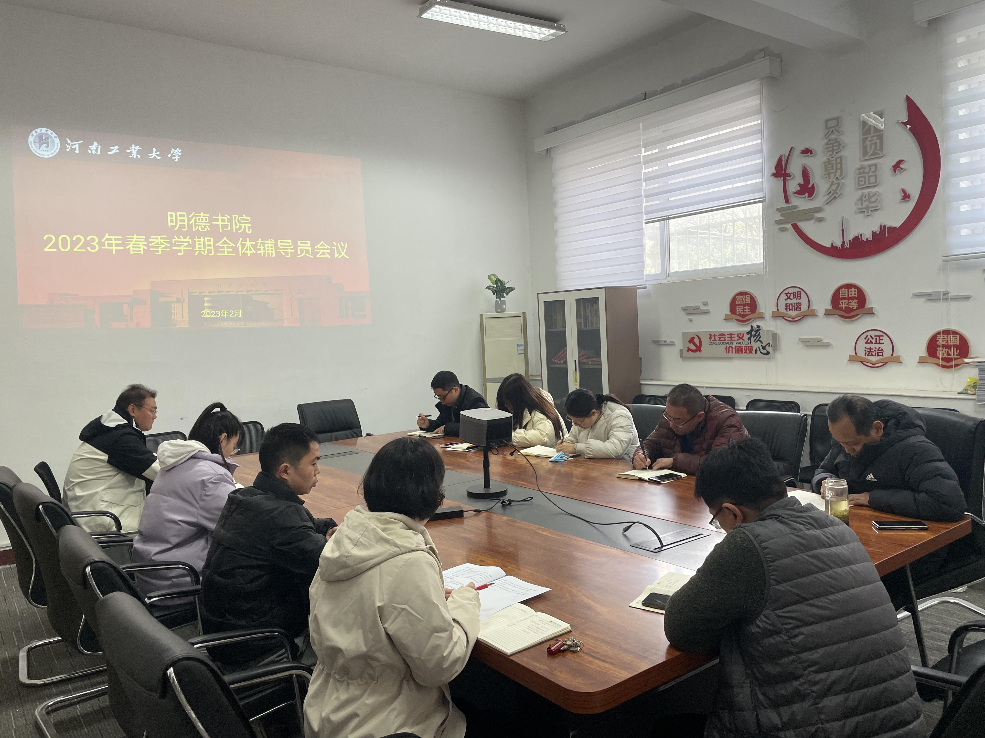 刘飞翔进行会议总结。他对2022年度学生工作进行了总结回顾,并就做好2023年度学生工作提出了明确要求:一是旗帜鲜明讲政治,提高站位把方向,切实发挥学生思想教育工作的引领作用;二是明确目标抓重点,精心谋划促落实,结合书院建设目标和学生工作要点,全面服务学生成长;三是强化指导拓平台,精准育人激活力,提升学生自主成长素质,打造书院育人特色;四是规范管理保秩序,筑牢防线保稳定,坚持底线思维,护航师生安全。