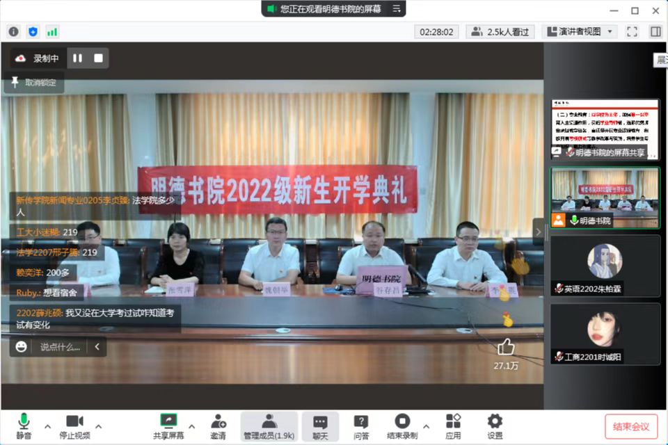 通过网络直播举行2022级新生开学典礼,书院党政领导班子、全体教师、2022级全体新生参加了典礼活动,典礼由院党委书记魏朝举主持。