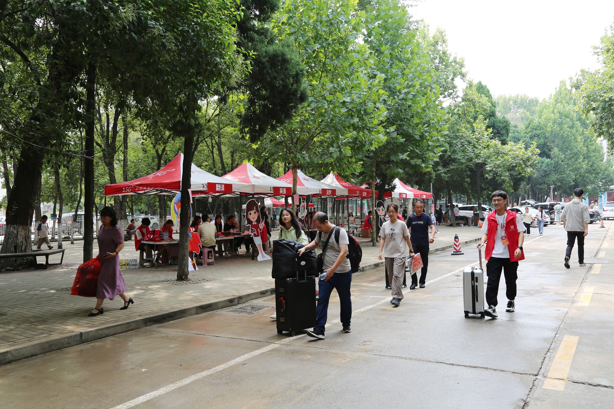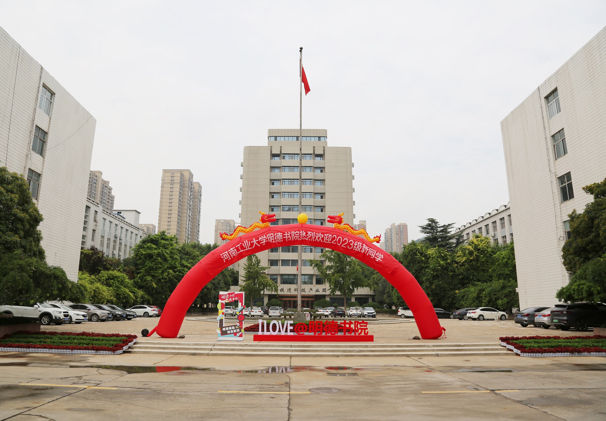 2023年秋季学期学生返校(新生报到)方案》,细化各部门工作分工,层层落实责任,以简化流程、精准服务、安全有序为原则,对新生报到、家长接待、校园引导、宿舍入住、行李服务等工作进行周密详细的安排。遍布校园的迎新标语、横幅、路引,特色迎新立绘,飘荡在校园中红色的水旗,现场为家长和新生们准备的休息处、饮用水等,营造了热烈、温馨的开学氛围。