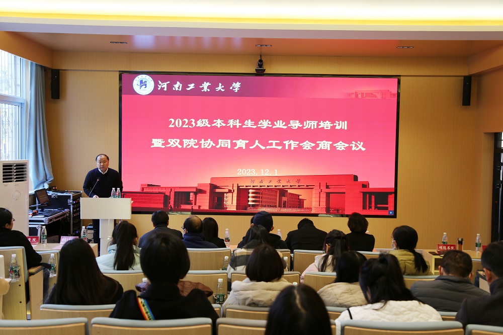 在嵩山路校区实验楼118召开2023级本科生学业导师培训暨双院协同育人工作会商会议。河南省高校书院制改革研究指导中心办公室主任刘东伟出席培训会,教师教学发展中心、管理学院、经济贸易学院、外语学院、新闻与传播学院、法学院、草莓视频