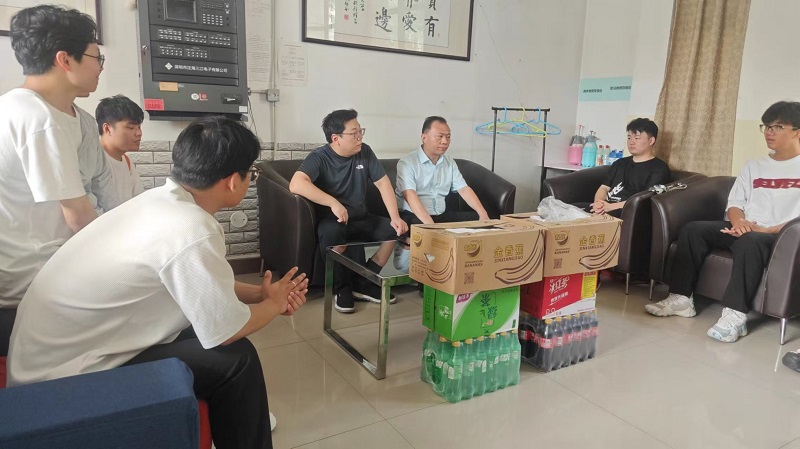 院长张石,党委副书记刘飞翔及辅导员代表刘晓一行深入到莲花街校区学生宿舍及学习生活区域,开展了一场假期特别关怀行动,为暑期坚守在校园的学子们送去清凉。