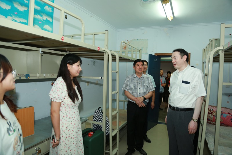 校长吴智深到学生宿舍看望学生和家长