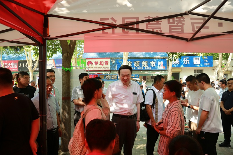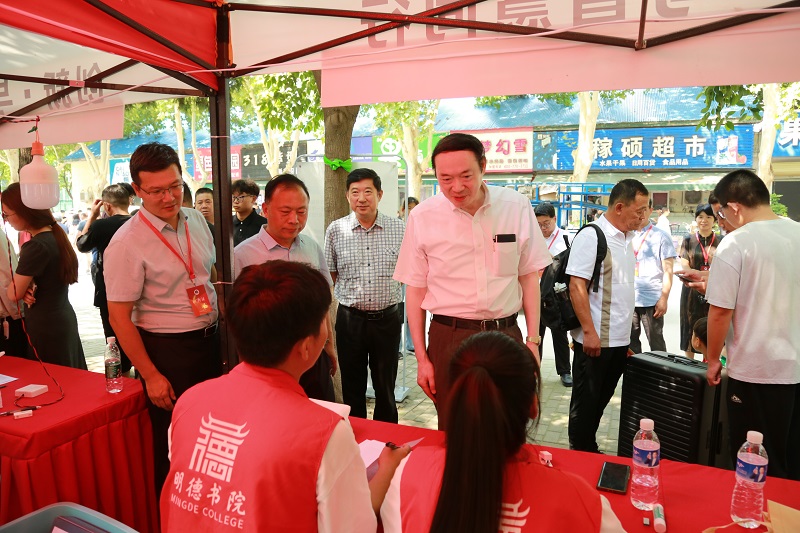 、相关专业学院等单位负责同志陪同下,深入嵩山路校区迎新报到现场,看望前来报到的新生和家长,慰问参加迎新工作的师生员工。