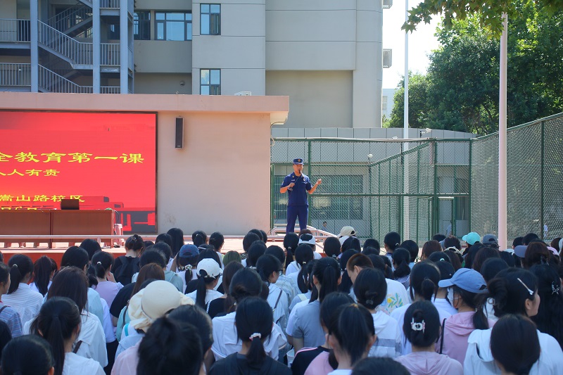 邀请中原分局林山寨派出所和中原区消防救援大队在嵩山路校区开展安全教育第一课。草莓视频