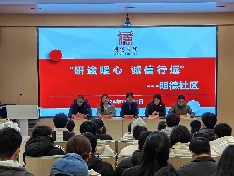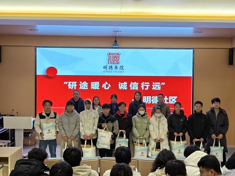 高度重视学生们的备考情况,为增强学生的备考信心,传递学院的温暖与关怀,并进一步强化考生诚信意识,12月17日,明德社区在实验楼118报告厅举办2025届考研学生慰问暨考生诚信教育大会。书院党委副书记杨二瑞、副院长张雪萍及全体辅导员,携精美礼品慰问考研学子,并进行考研冲刺动员。