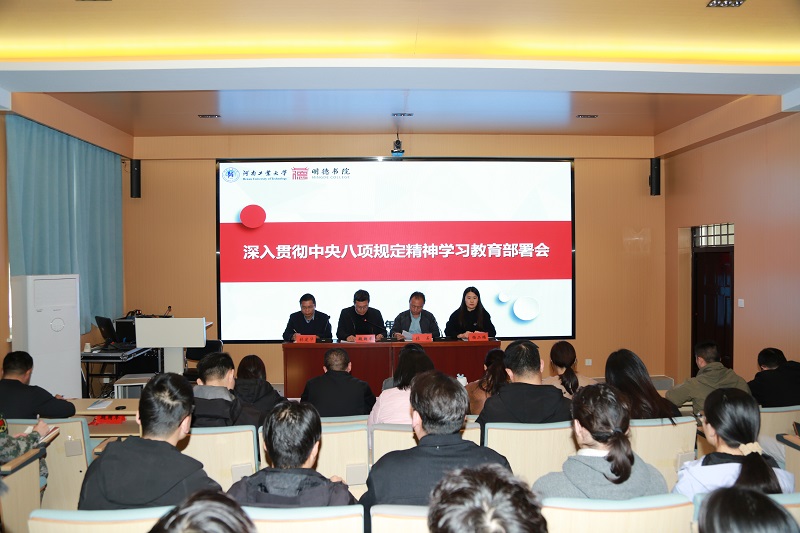 于3月28日下午在嵩山路校区实验楼118会议室召开“深入贯彻中央八项规定精神学习教育部署会”。会议由书院院长张石主持,书院全体教职工党员和学生党员代表参加会议。
