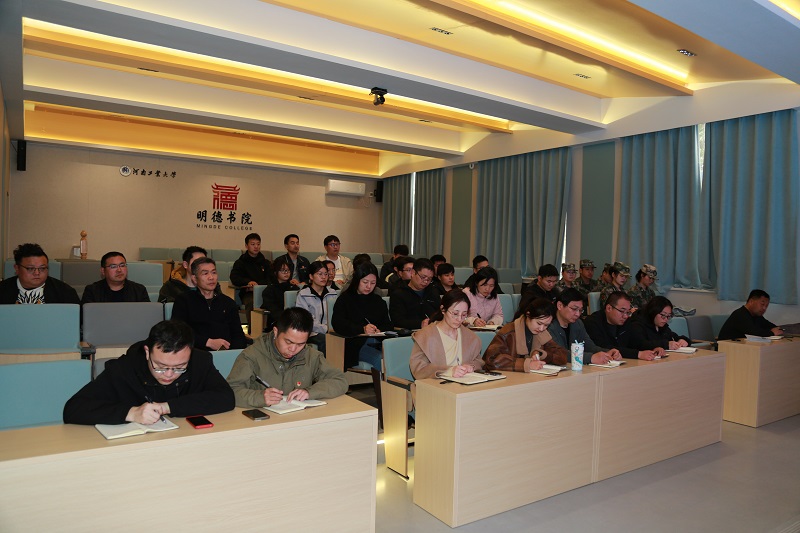 书院党委书记魏朝举传达了校党委《关于在全校党员中开展深入贯彻中央八项规定精神学习教育的工作方案》的具体要求,以及学校深入贯彻中央八项规定精神学习教育读书班会议精神。