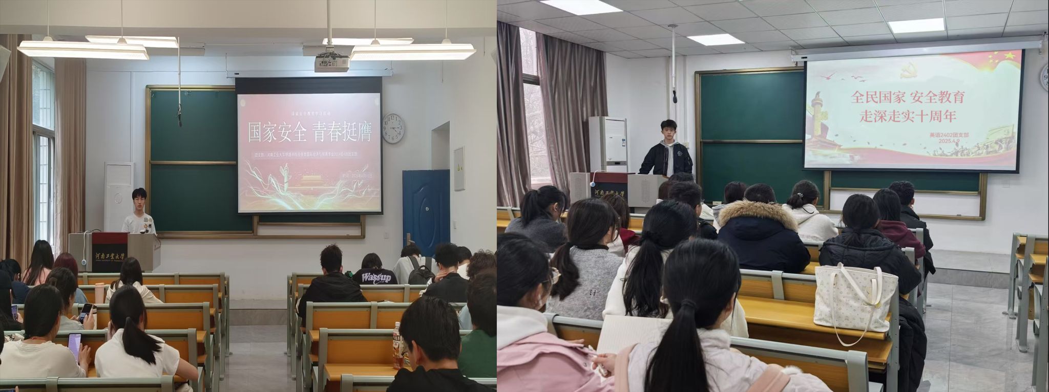 各团支部积极响应号召,纷纷开展“国家安全教育日”主题班会。新闻学专业2024级2班和播音与主持艺术专业2024级4班团支部在观看过国家安全主题教育相关视频后,团员们结合自身所学专业和日常生活实际,对国家安全议题展开了激烈讨论。通过案例分析、小组讨论等形式,大家深刻认识到在全球化背景下,国家安全仍面临着诸多挑战。作为新时代的青年,团员们纷纷表示要时刻保持警惕,自觉抵制危害国家安全的行为,争做点亮国家安全之光的火炬手,共同守护国家安全防线。