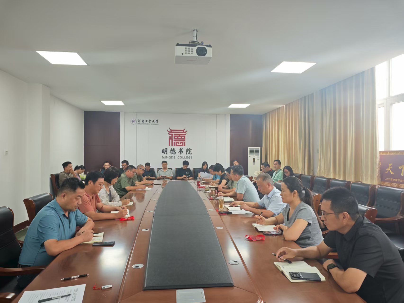 召开全体教职工大会,全面部署新学期重点工作,重点围绕迎新筹备、教学管理、校园安全及书院发展规划等议题展开。书院领导班子成员及全体教职工参加会议,会议由书院党委书记魏朝举主持。