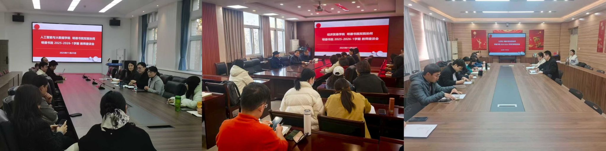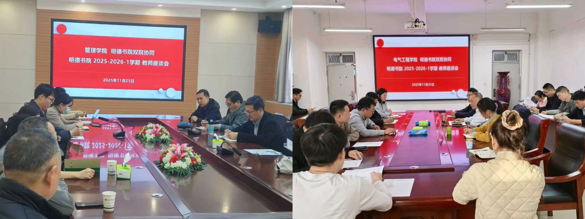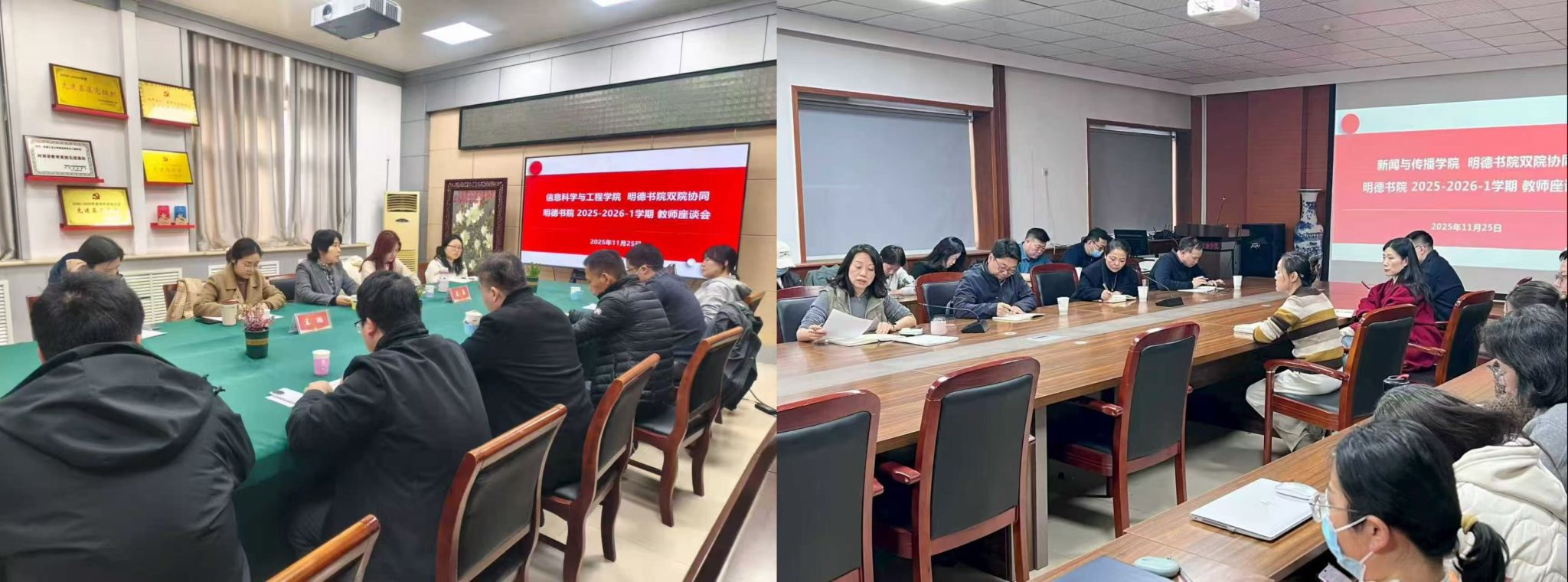 领导班子统筹部署,整合书院教学办、导师服务中心、学工办、团委等部门力量,组建七个专项工作组,于11月25日,分赴信息科学与工程学院、电气工程学院、人工智能与大数据学院、管理学院、经济贸易学院、新闻与传播学院、法学院等七个学院,召开2025-2026学年第一学期协同育人教师座谈会,与各学院共商协同育人路径,擘画校区发展新蓝图。