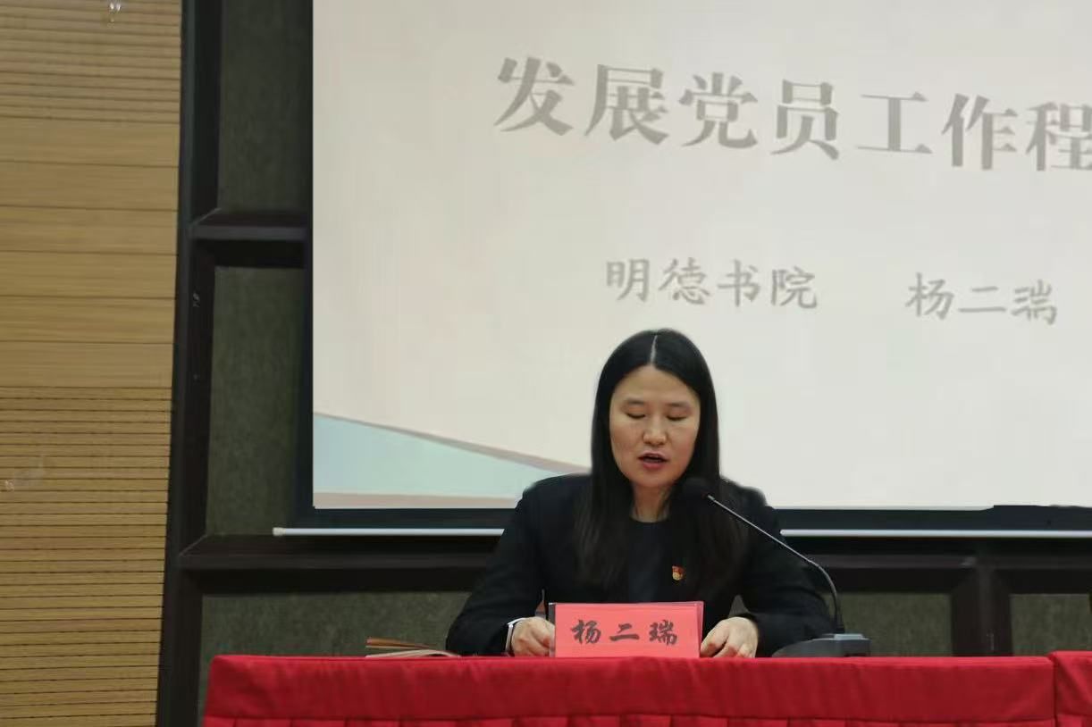 党委副书记杨二瑞以《发展党员工作流程》为题进行授课分享。培训紧扣《中国共产党发展党员工作细则》内容实质,重点围绕发展党员5个阶段25个主要流程展开详细讲解,涵盖从入党申请人递交申请书开始,到预备党员转正的发展党员全过程。同时,采用理论与实践相结合的模式,充分运用典型案例分析,列举实际案例,深入剖析在各流程中容易出现的问题及解决方法,为同学们提供可直接借鉴的实践指引。