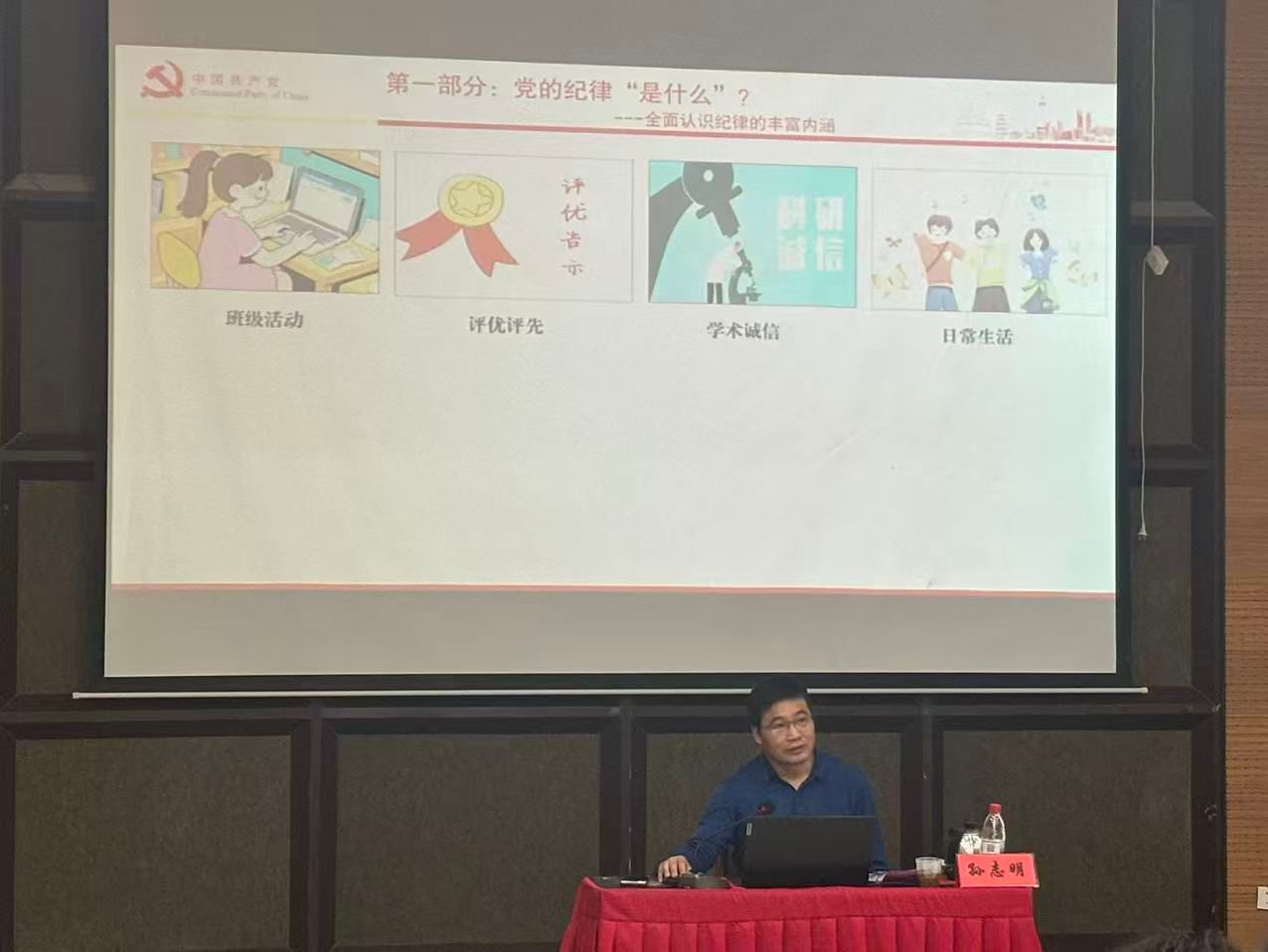 11月29日下午,校纪委副书记孙志明围绕“党的纪律”为题讲授党课,他结合《中国共产党纪律处分条例》与典型案例,解读党的纪律规矩内容与意义。系统梳理“六大纪律”内涵与要求,强调守纪律、讲规矩对党员的重要性,教育学员知敬畏、存戒惧、守底线,践行初心使命。