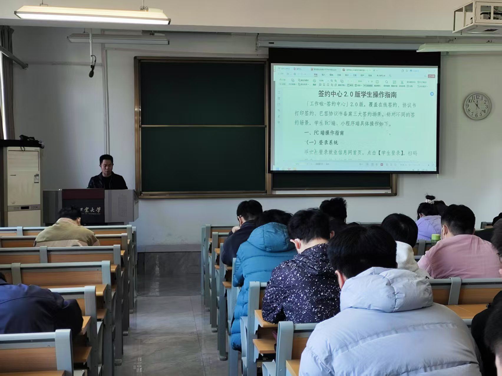 在教学楼109教室召开毕业生就业指导工作会,帮助毕业生明晰就业方向、把握发展机遇。书院学工办主任薛晓晓、毕业生辅导员谷保材和2026届毕业生近百人参与本次活动。