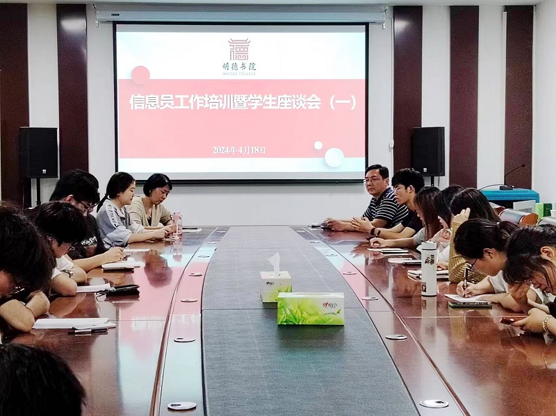 在嵩山路校区207会议室召开本学期学生信息员工作培训暨学生座谈会。导师服务中心主任王丽波、23级管理类、经贸类学生信息员参加会议,会议由教学办主任李自新主持。