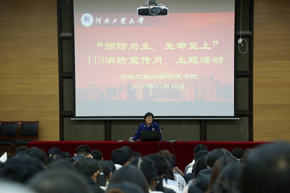 本次活动分为消防安全知识讲座和消防演练两个环节。首先中原区消防救援大队王春荣警官以“预防为主、生命至上”为主题,围绕秋东季节特点,运用真实的案例视频向师生讲述了不同类型的火灾隐患及火场的安全疏散与逃生知识,以此敲响消防安全的警钟。讲座内容丰富、视频案例生动,警示力强,教育度高,让在场人员对消防安全事故的教训更为深刻,消防安全防范和逃生自救意识也得到了进一步提升。师生们一致认为收获颇丰,将谨记消防安全预防为主、生命第一的准则,为创造和谐、稳定的校园环境不懈努力。