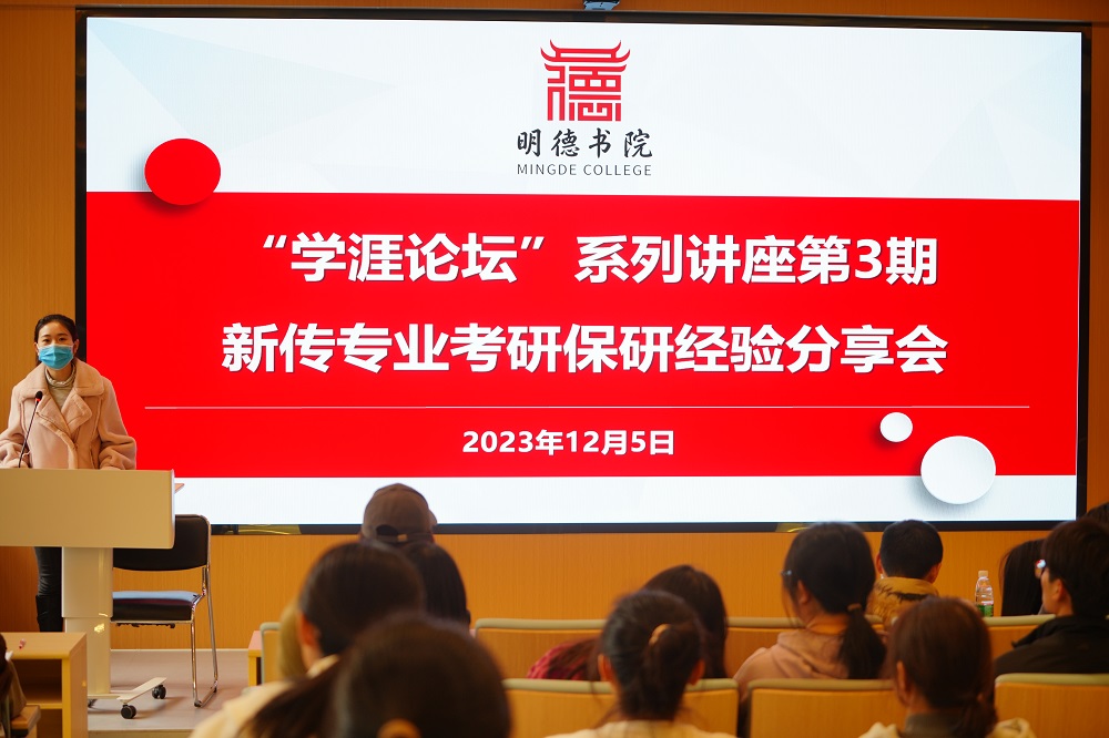 新传专业辅导员董雪甜主持。此次论坛围绕“考研保研,做好学涯规划”进行专题分享。新传专业的大一同学带着对未来的憧憬,积极参与到活动中来,收获颇丰。