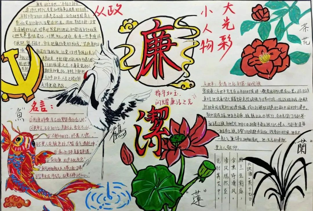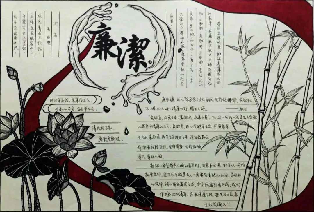 此次活动收集作品80余幅,覆盖学生百余人。手抄报、书法、漫画作品内容丰富、寓意深刻,既有书写清廉内涵的诗词、格言、警句,也有描绘象征着清正廉洁的修竹、青莲、苍松,寓廉于画、寄廉于书,融思想性、艺术性、教育性于一体。作品紧扣“清廉”主题,聚焦忠诚、实干、担当,挖掘提炼中华优秀传统文化、民族文化、红色文化中的廉洁元素。一篇篇“廉思廉悟”、一幅幅“廉墨廉韵”、一张张“廉彩廉绘”,明德学子用笔墨将清廉形于笔端,通过艺术感染、文化浸润的方式,将传统文化与清廉校园建设紧密结合,营造崇廉、尚廉的良好氛围。活动最终评选出30幅获奖作品,并在校园内进行了公开展示,吸引了众多师生驻足欣赏。