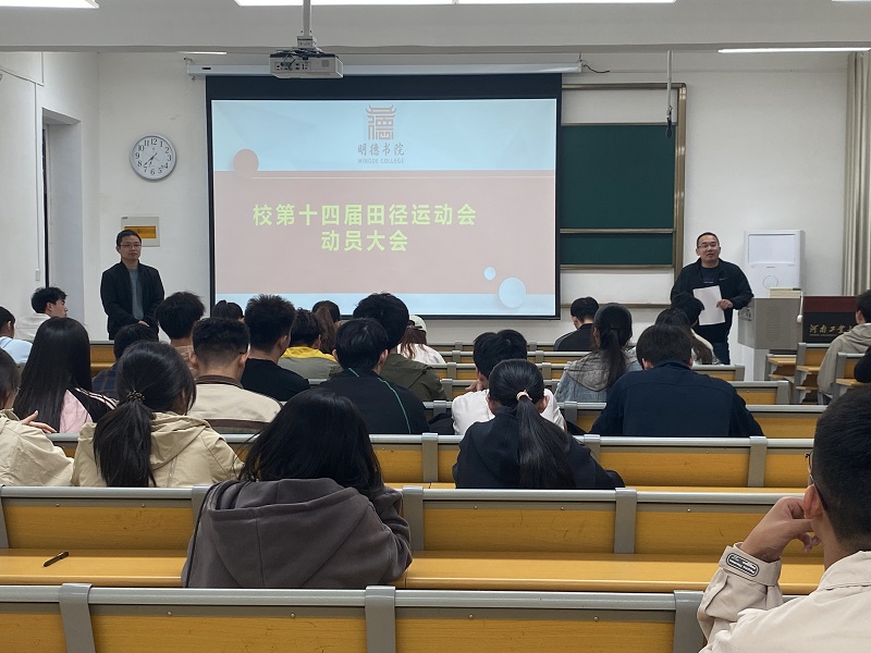 于实验楼206举办了第十四届田径运动会动员大会,团委副书记薛晓晓老师和辅导员徐东明老师出席了本次会议。