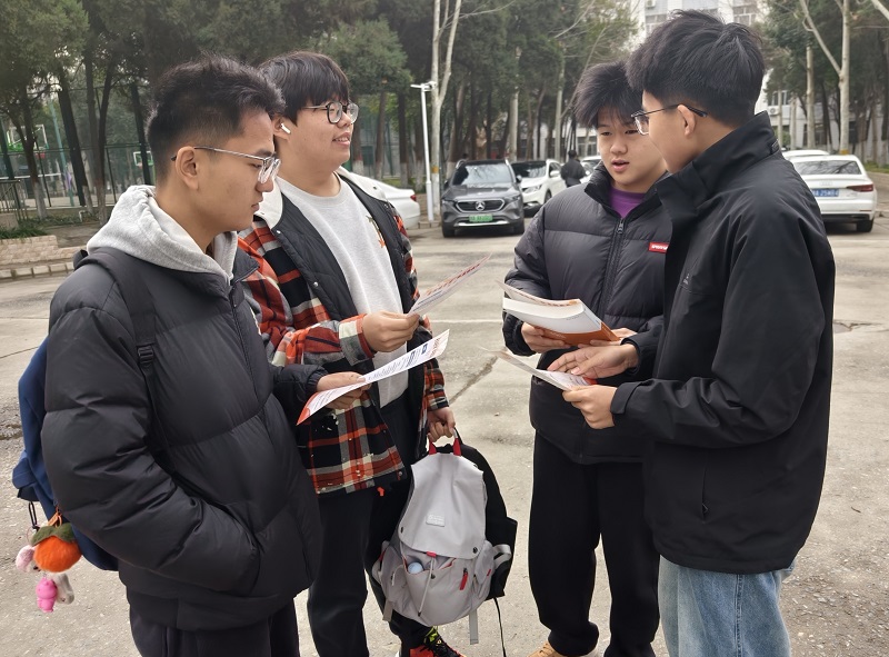 3月2日午后,线下普法活动在校园内展开。志愿者通过发放精心印制的宣传页,科普法律常识,帮助学生了解法律知识。活动现场,参与挑战赛的同学们围绕法律议题,对文学作品中蕴含的法律知识各抒己见。王艺涵同学以路遥《平凡的世界》中,矿工孙少平遭遇矿难殉职却仅获象征性补偿的文学叙事为切入点,通过文本细读与法理思辨,创造性关联我国现行《劳动法》第五十二条确立的劳动安全卫生保护权条款;吴雅涵同学从《红楼梦》的秦可卿之死切入,通过对比古今法律体系,揭示了传统性别秩序对司法正义的扭曲,并借《刑法》第二百三十六条强奸罪的法理演进,呼吁强化刚性刑罚震慑犯罪,使文学镜像照进法治现实,以预防性正义守护无辜者的生存尊严。