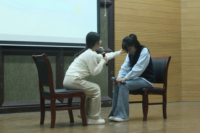 在小礼堂举行心理情景剧大赛。本次活动主题为“凝心聚爱,逐梦青春”,比赛由朋辈心理联盟成员作为评委进行现场打分,书院心理专干董雪甜老师现场进行指导点评。