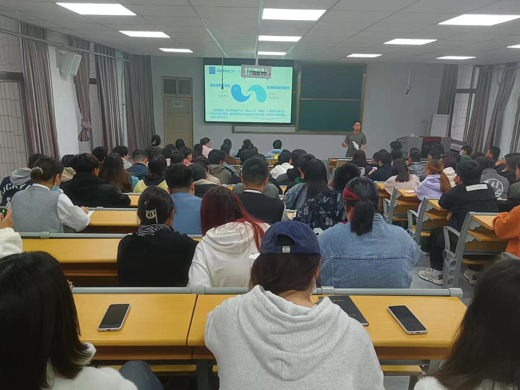 在教学楼420教室召开2023届贷款毕业生诚信教育暨毕业确认宣讲会。书院学工办主任王荣健、资助助理及2023届贷款毕业生参加了此次会议,会议由书院资助工作负责老师谷保材主持。