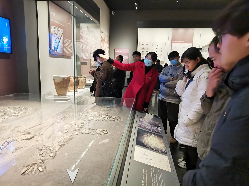 在参观过程中,同学们认真聆听了讲解员的介绍,仿佛置身于时光隧道,被不同展区的一件件文物映射出的古代历史文化所折服,满怀敬仰之情感受河南文化的发展进程,用心感悟着河南历史发展的厚重底蕴。在红色主题教育展厅内,一件件朴实无华的革命文物,见证着百年历史中,一批又一批优秀共产党员舍身忘我地浴血奋斗,在中原大地上写下的可歌可泣的革命事迹。同学们领悟到了大别山精神、红旗渠精神和焦裕禄精神的实质内涵,了解了在中国共产党的领导下,河南人民救亡图存、建设河南的伟大历程和改革开放取得的辉煌成就。