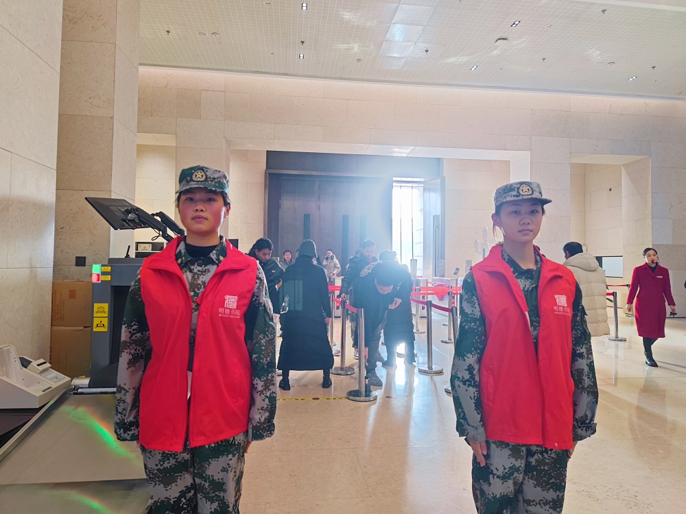 随后,同学们穿上志愿者马甲,积极投入到维持人员疏通和维护场馆秩序等工作中。在第四展厅中,他们还主动为来访者进行展览导览,为游客介绍中原传统文化相关内容。