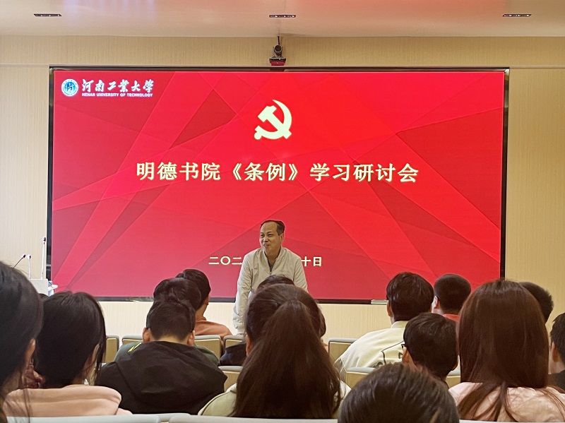 《条例》学习研讨会。各党支部书记和党员代表围绕党纪学习教育交流研讨,分享学习心得和体会。王荣健、李自新、王欢等多位教工党员代表结合工作实际,谈到了如何将学习成果转化为工作动力和实际成效,展现了良好的担当精神和作为意识。学生代表表示通过此次《条例》学习,要更加高标准要求自我,做好党员模范带头作用。