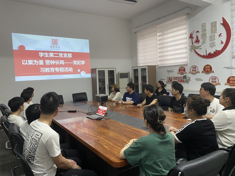 学生第二党支部在办公楼108会议室举行“以案为鉴 警钟长鸣” 专题党纪学习教育。