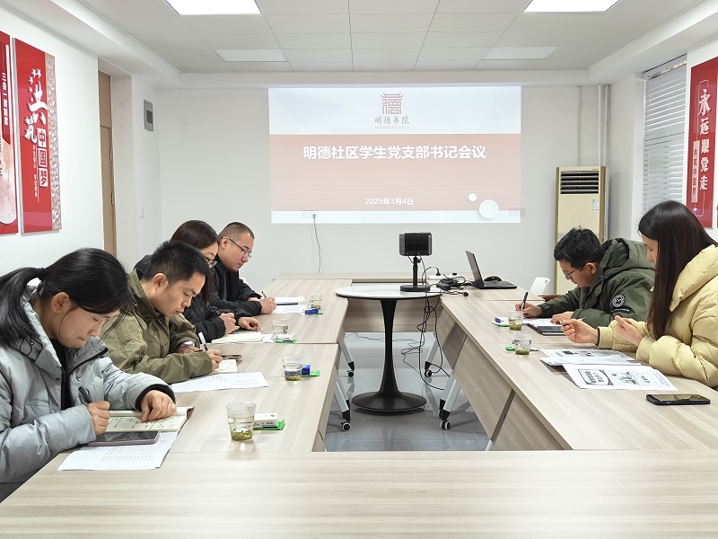 在明德社区党建会议室召开了学生党支部书记会议。书院党委书记魏朝举和全体学生党支部书记参加会议,会议由书院党委副书记杨二瑞主持。