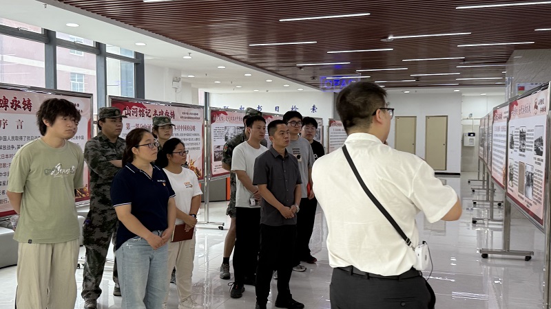 踏入展览现场,仿佛穿越时空,郑州信息工程职业学院讲解员、《中共党史》课教研组长赵文甫以渊博的学识和生动的语言,带领现场师生共同回望了那段波澜壮阔又充满血泪的历史岁月。