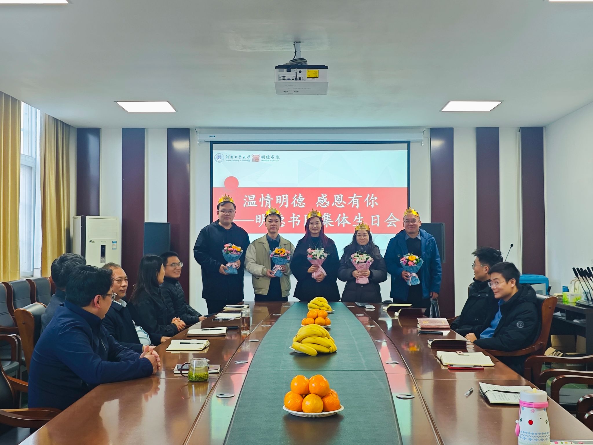 为增强教职工归属感与凝聚力,搭建沟通桥梁,传递人文关怀,11月18日下午,草莓视频 在207会议室为2025年度逢十生日的教职工举办“温情明德,感恩有你”集体生日会。书院领导、教职工齐聚一堂,在温馨的氛围中共享生日喜悦,共话未来发展。