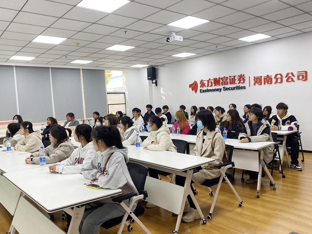 经贸类专业学生在辅导员张佳晨老师的带领下,统一乘车前往东方财富证券(河南分公司)开展“研学进企业,匠心助成长”企业参观研学活动。
